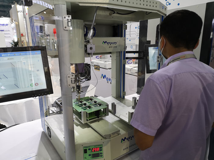在此次慕尼黑電子展上,DT-461、IL-5000B等邁威最新研發(fā)制造的自動焊錫機首次亮相。